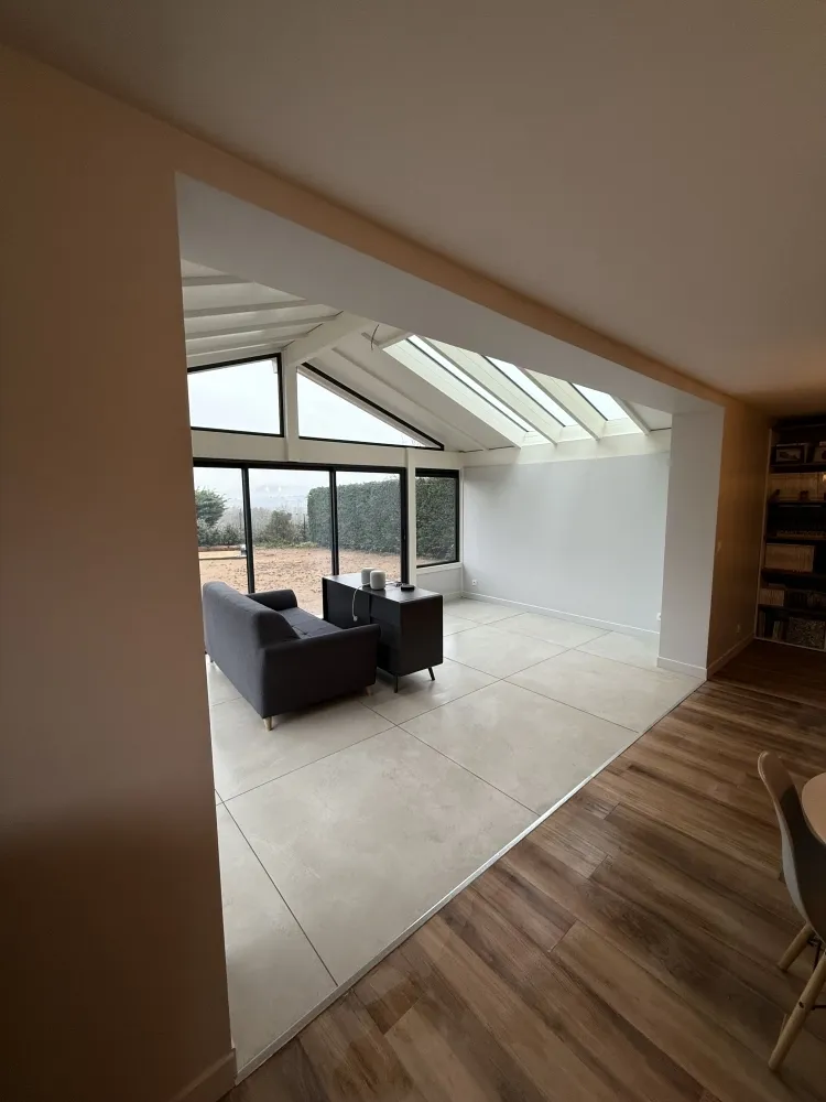 Notre entreprise de plâtrerie, peinture et béton ciré à Grézieu-la-Varenne, spécialisée dans la rénovation intérieure, vient de finaliser une nouvelle intervention sur un chantier d’agrandissement situé à Lentilly.